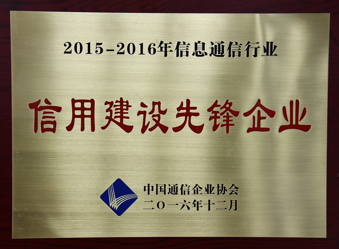 我公司被中国通信企业协会评为2015-2016年信息通信行业信用建设先锋企业