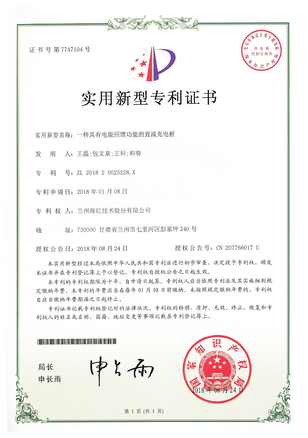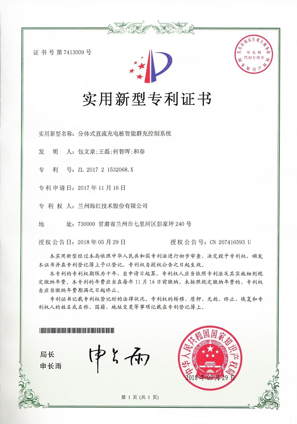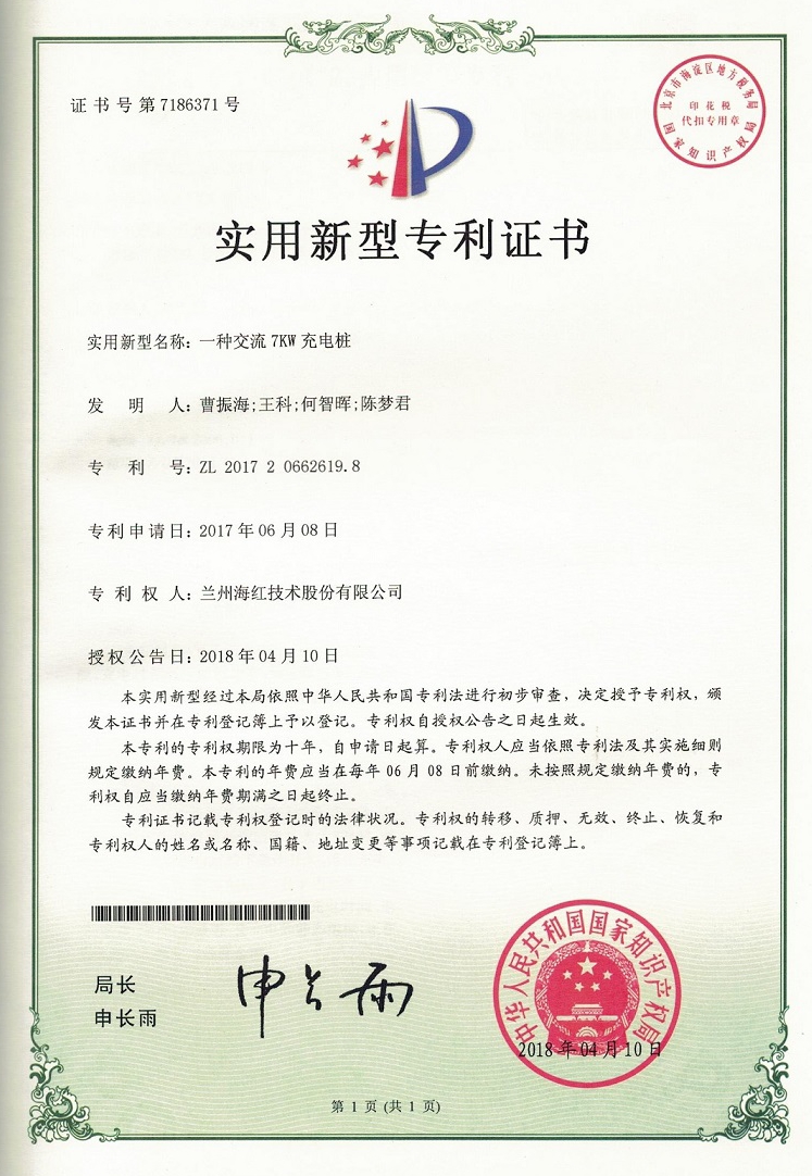 我公司又取得一项实用新型专利,至此我公司申请受理的专利数累积84项(其中发明专利17项,实用新型专利56项,外观设计专利3项,软件著作权8项),已获得授权55项(其中发明专利8项,...