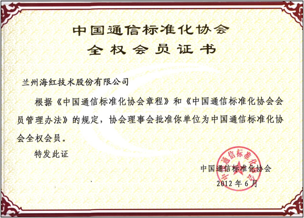 中国通信标准化协会 全权会员证书